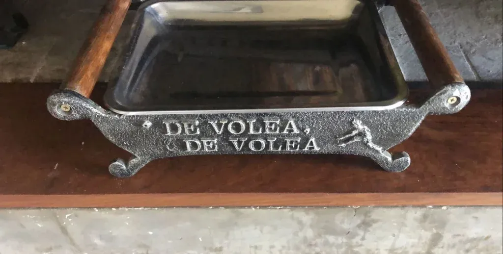 El parrillín que le regaló su familia con la frase "De volea, de volea", y su figura pateando en el recordado gol a Olimpia