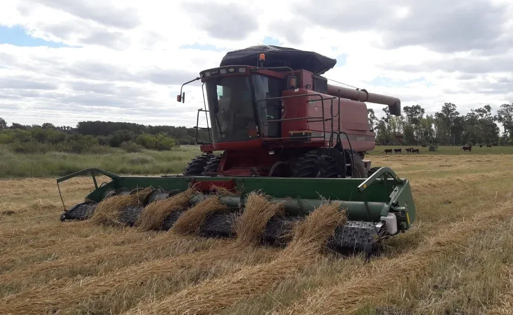 La CASE, modelo 2399, con plataforma de lona Mac Don. Granos de 1.700 hectáreas