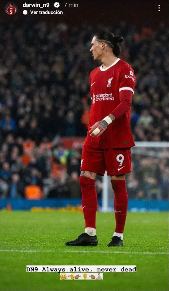 Instagram Darwin Núñez publicó un enigmático mensaje en sus redes sociales luego del triunfo de Liverpool El delantero también mandó un mensaje para los hinchas reds en una publicación.