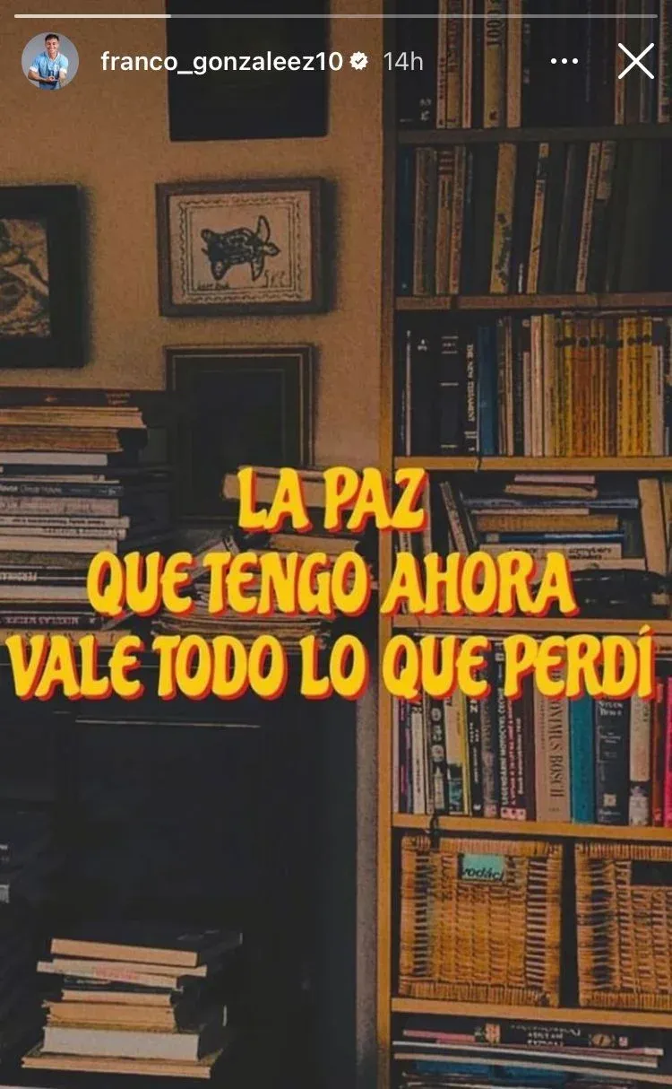 El campeón mundial sub 20 publicó una historia de Instagram con una placa que decía: "La paz que tengo ahora vale todo lo que perdí".