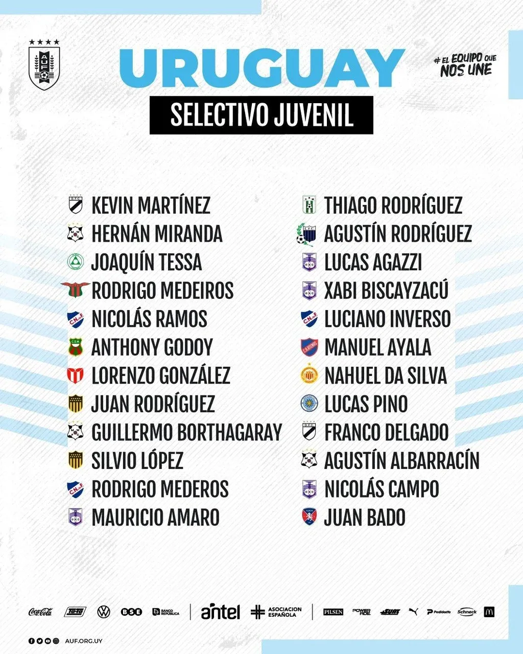 AUF Los 24 citados para el selectivo juvenil Sin sparrings en Qatar
