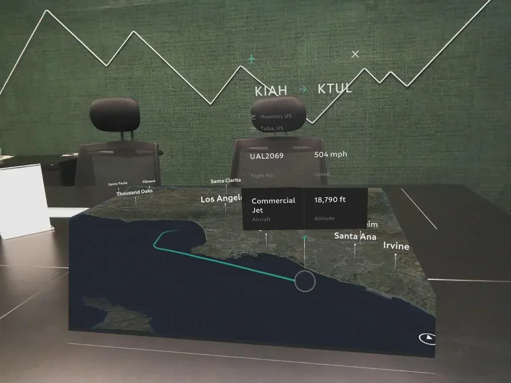 También se puede ver un mapa tridimensional sobre una mesa donde se observan todos los vuelos en tiempo real que hay en un país determinado. Una app ideal para controladores aéreos.