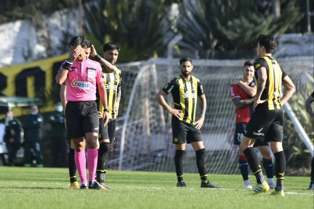 Un gesto equivocado del árbitro Leodán González llevó a las protestas de los jugadores de Albion tras el gol de Peñarol