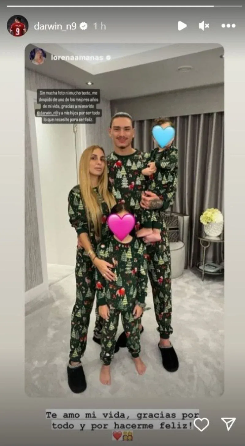 Lo más llamativo del posteo, es el espectacular y diferente atuendo con el que toda la familia de Darwin Núñez celebró Fin de Año y la llegada del Año Nuevo en su casa, ya que en Inglaterra, difícilmente los clubes se concentren, y mucho menos en una fecha como esta.