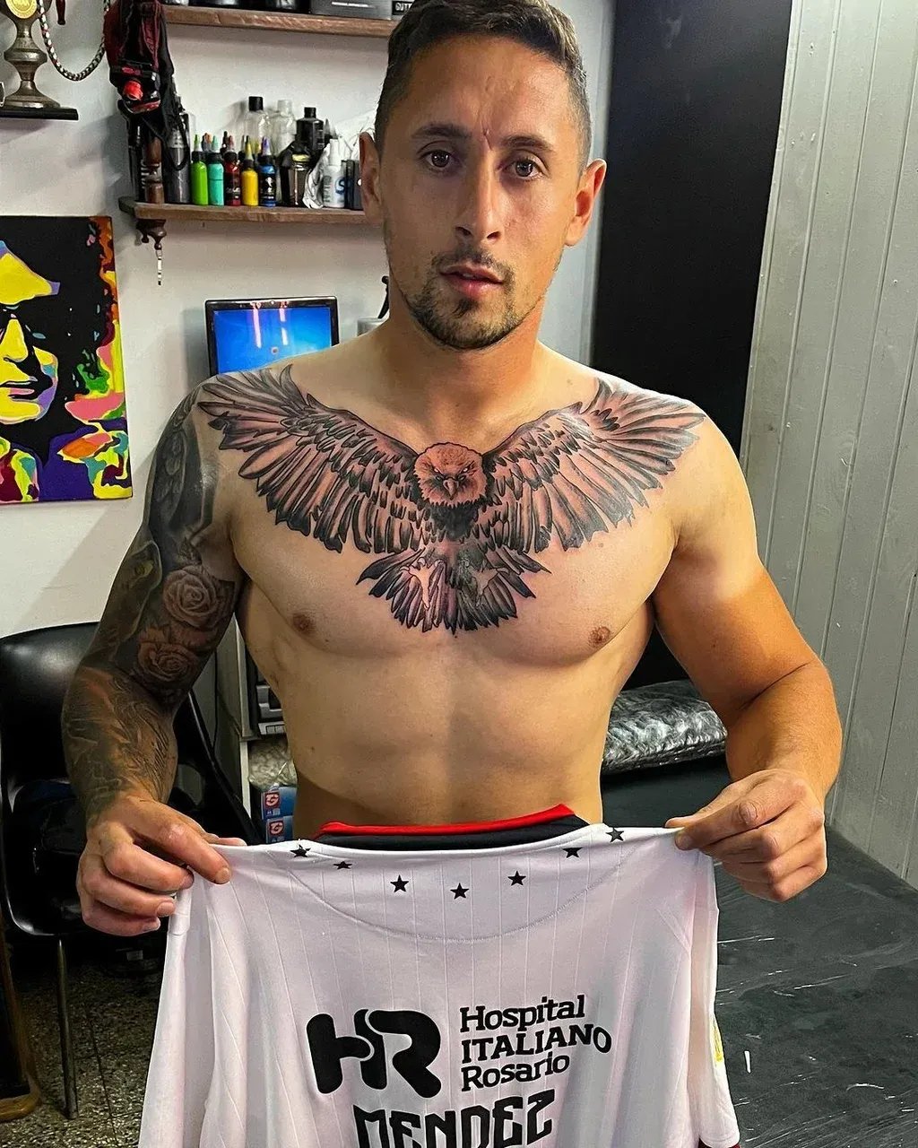 Un exjugador de Nacional que juega en el fútbol argentino mostró el espectacular tatuaje que se realizó en el pecho y lo compartió en sus redes sociales.
