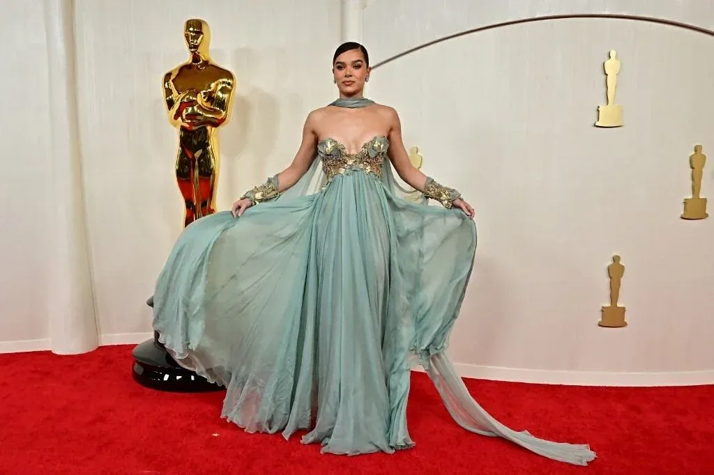 Hailee Steinfeld también se apuntó a la moda de las sirenas, con un vestido de gasa de Elie Saab con un corpiño dorado y un pañuelo atado a las muñecas a modo de mangas flotantes.