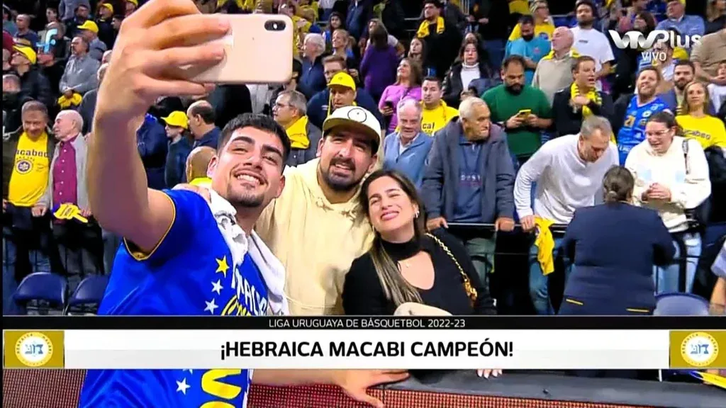 Un exfutbolista de Peñarol estuvo este lunes en el Antel Arena para alentar y celebrar el título de Hebraica Macabi ante Nacional por las finales de la Liga Uruguaya de Básquetbol 2023.