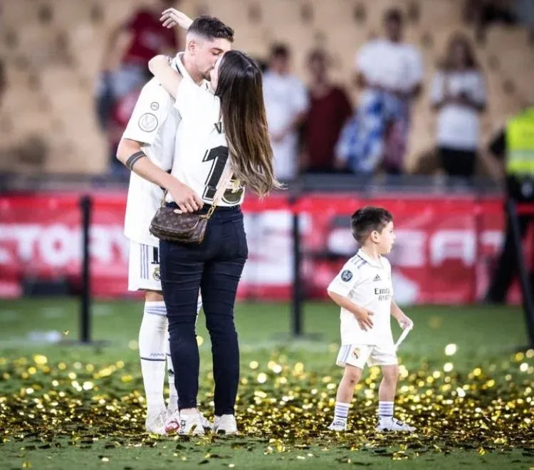 Asimismo, su esposa Mina Bonino posteó en Instagram fotos de la celebración de Valverde en la cancha junto a Benicio, el hijo de ambos.