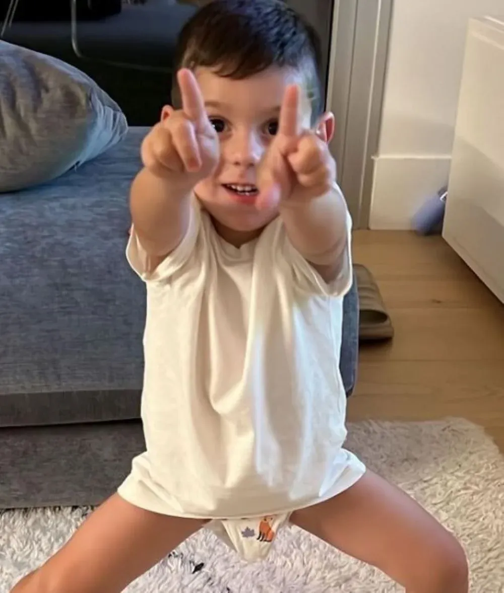 Mientras tanto, en su casa, su hijo observó el festejo por televisión y volvió a replicar el festejo, haciéndolo igual que su padre.
