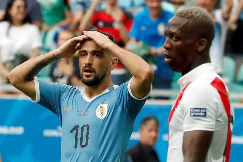 A los 36', un pase de De Arrascaeta le dio a Uruguay la mejor situación del partido: un pase para la carrera de Cavani no se transformó en gol porque Gallese, el golero peruano, volvió a evitar la caída de su arco, como antes lo hizo con Luis Suárez.