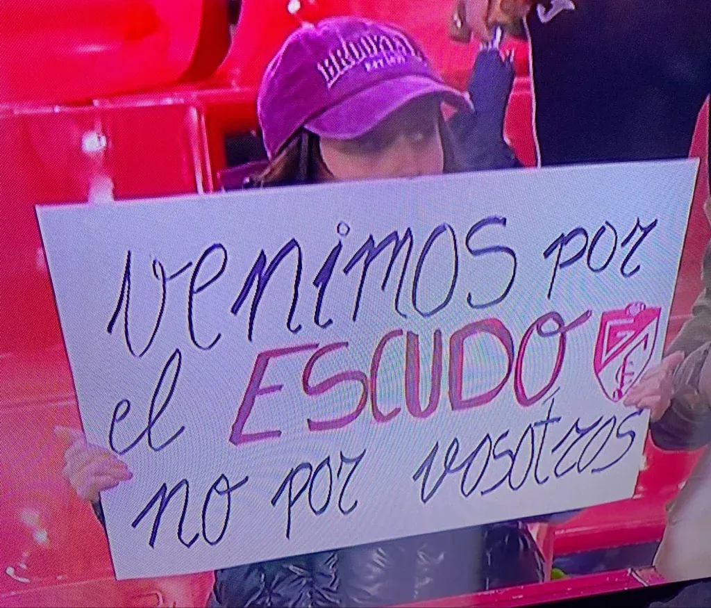 Además, en la transmisión televisiva, se pudo ver a una niña portando un cartel muy fuerte: "Venimos (al estadio) por el escudo, no por vosotros".
