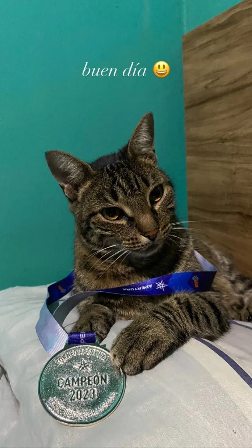 El que tuvo un amanecer especial fue el zaguero juvenil Nahuel Herrera, que le puso su medalla de campeón a su gato y le sacó una foto que publicó en su cuenta de Instagram.