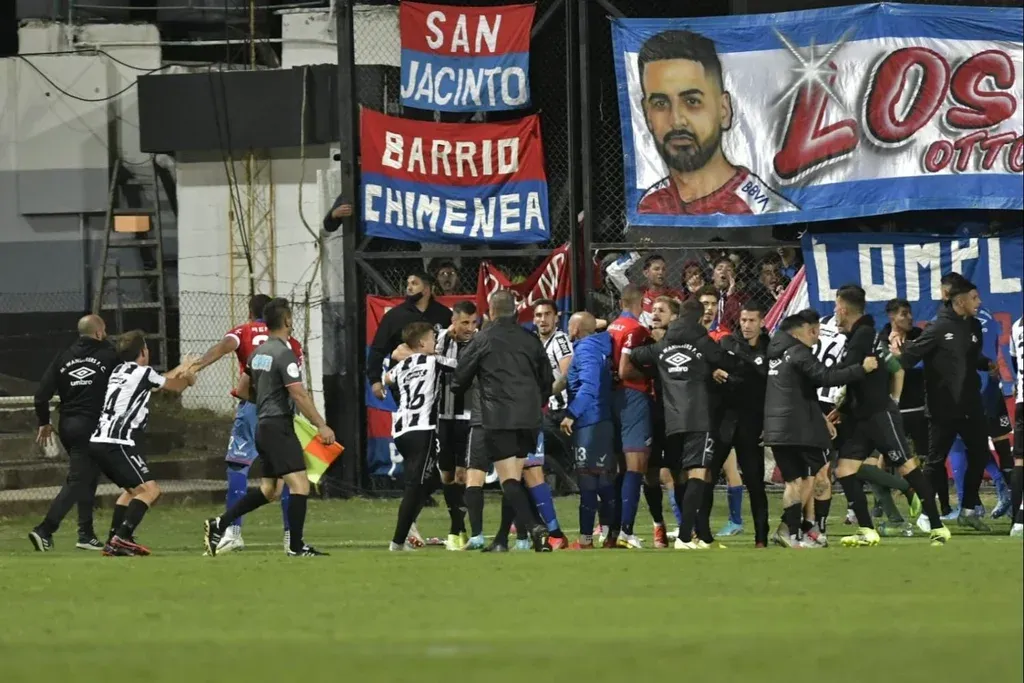 La refriega más grande del partido, tras el 2-1 de Wanderers