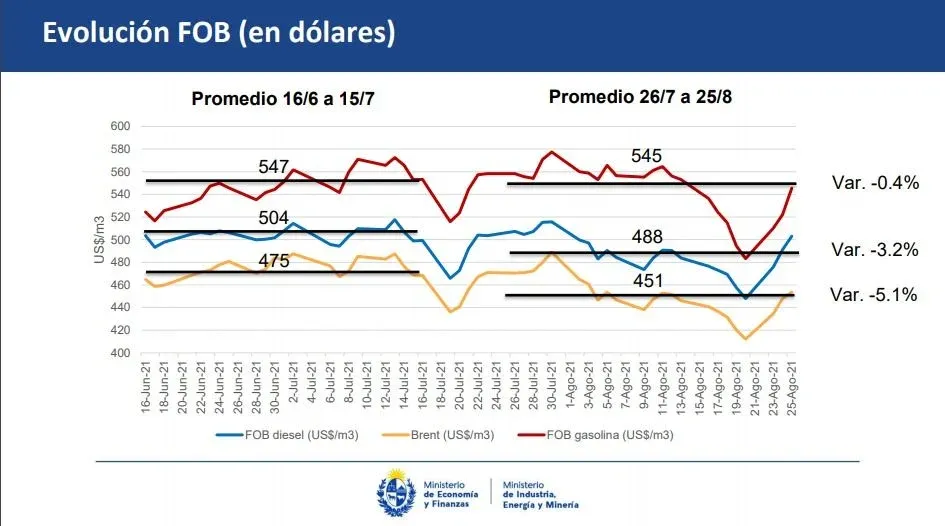El PPI de la Ursea que el Poder Ejecutivo tomó como insumo abarca el último mes móvil entre el 26 de julio y el 26 de agosto. Y es la segunda vez que el nuevo esquema se aplica en plenitud, es decir, tomando también en cuenta los sobrecostos de Ancap ($ 2,97 por litro).