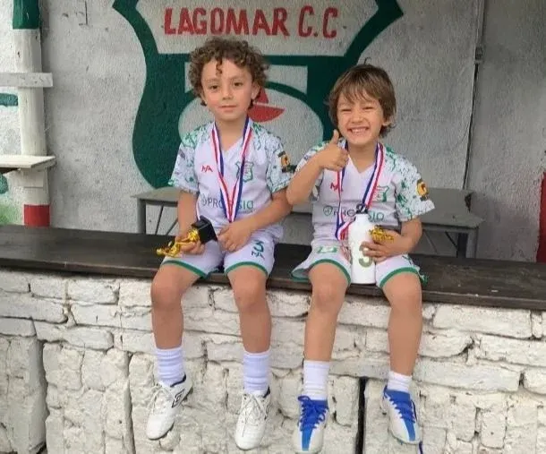 El pequeño futbolista es Arthur Coelho, hijo de Leo Coelho.