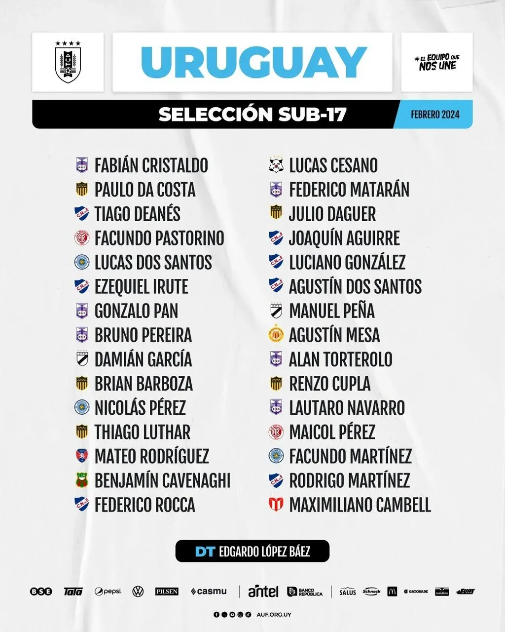 La selección sub 16 de Uruguay, que jugará un Sudamericano especial en Bolivia este año, está trabajando desde esta semana con un plantel que integran 32 jugadores y que tiene en sus filas al hijo de un goleador del fútbol argentino.