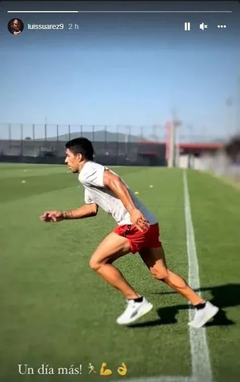 Luis Suárez continúa con su entrenamiento diario en doble turno, mientras decide su futuro. Este viernes publicó una fotografía en Instagram con el mensaje "Un día más", donde se lo ve en excelente forma.