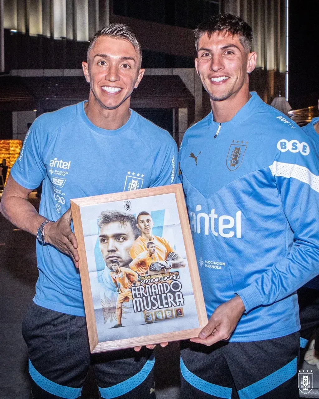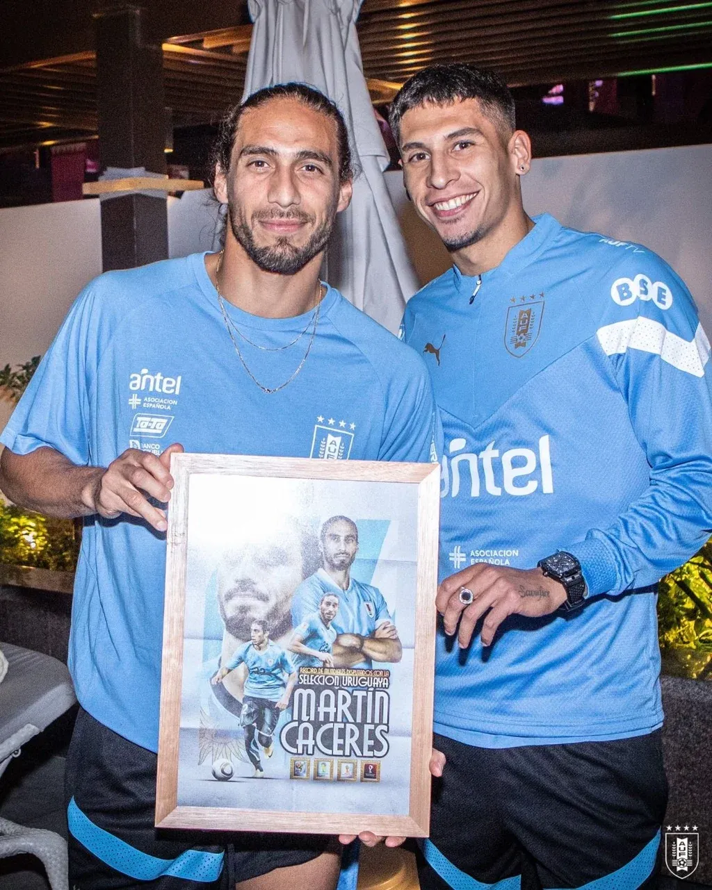 La Asociación Uruguaya de Fútbol (AUF) homenajeó a Diego Godín, Luis Suárez, Edinson Cavani, Fernando Muslera y Martín Cáceres, los cinco jugadores que llegaran a la marca de cuatro mundiales en Qatar 2022, pasando a serm junto a Pedro Virgilio Rocha, los jugadores celestes con más presencias en ediciones de la Copa del Mundo.