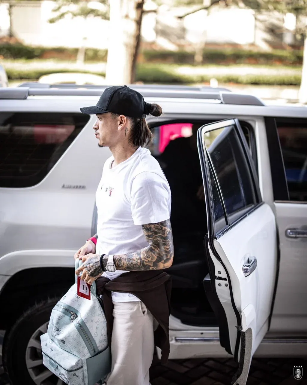 Darwin sonrió ante las cámaras de la AUF, que captaron su llegada en fotos donde también se pudieron ver sus tatuajes.