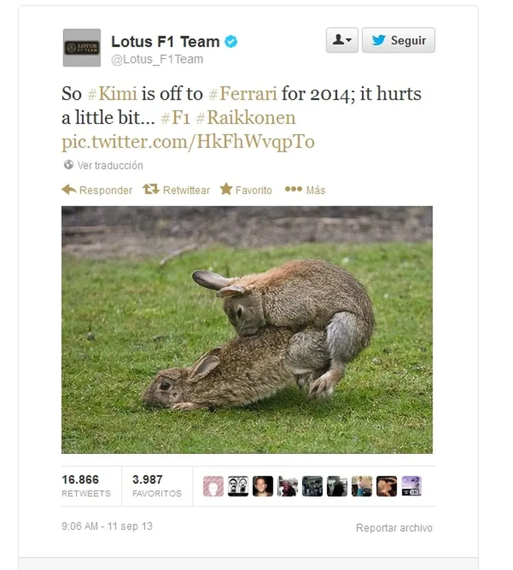 La escudería mostró su desazón con la partida de Kimmi Raikkonen con un original y polémico mensaje en su cuenta de Twitter