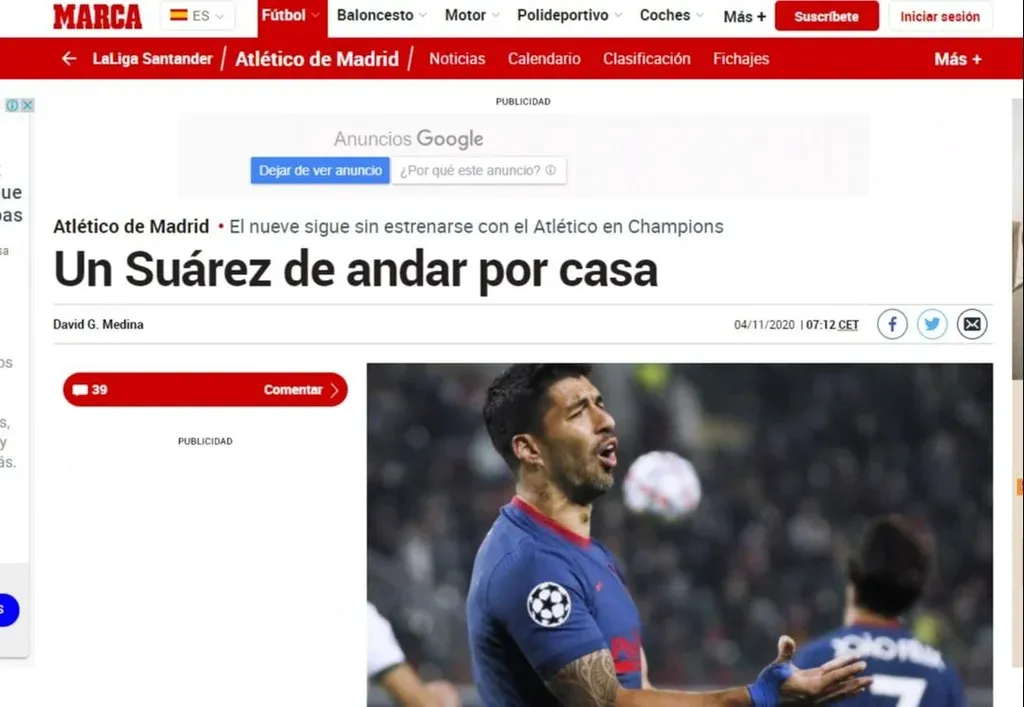 El diario Marca señaló que luego de aquel tanto de setiembre de 2015 ante la Roma, Suárez inició “una racha histórica e inédita en uno de los jugadores con mayor capacidad goleadora de la última década. Un 9 para la historia que está haciendo historia en el sentido negativo. De hecho, nunca un delantero había pasado tiempo sin marcar fuera en la Champions. Una racha impropia que, además, ha estado acompañada de errores impropios en un delantero centro al que se le caen los goles”, expresó Marca.