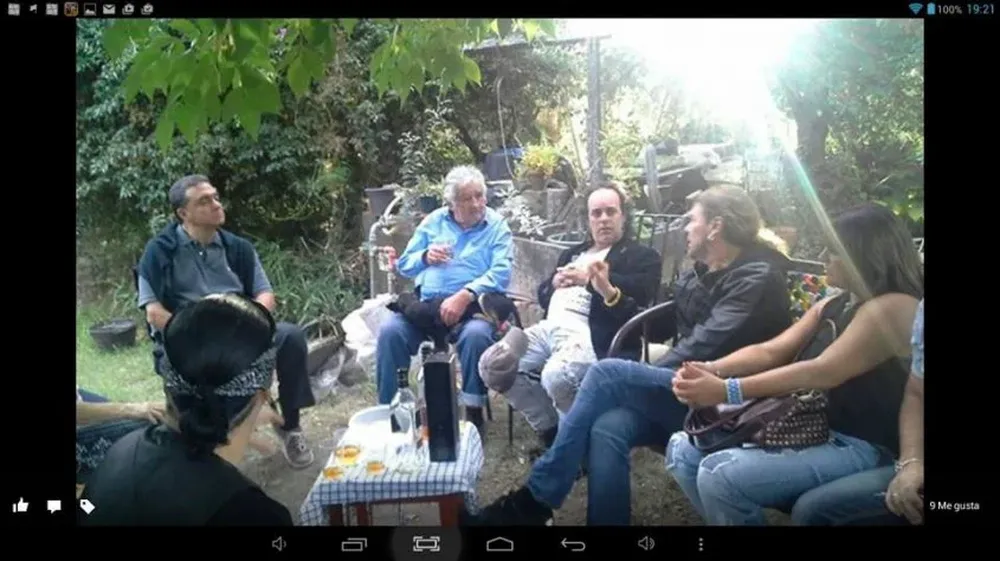 Mujica entonces almorzó con los músicos, y los invitó con un whisky mientras charlaban amenamente en su casa. Incluso circularon fotos del vocalista en el famosos fusca celeste del exmandatario.