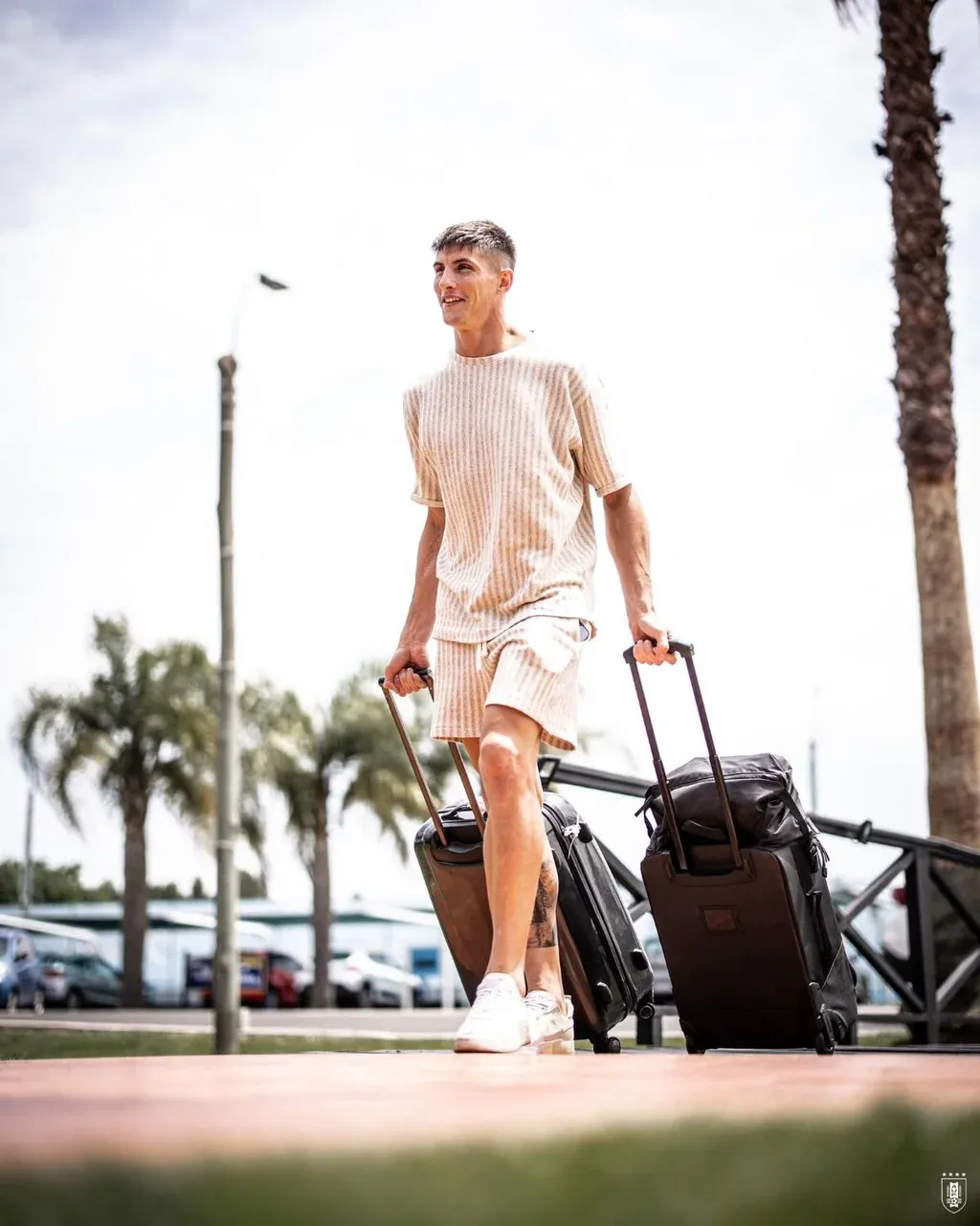 El arquero de la selección uruguaya, Sergio Rochet, llamó la atención por el look que eligió para ir al Complejo Celeste este domingo para sumarse a los entrenamientos de Marcelo Bielsa de cara a los partidos por Eliminatorias ante Argentina y Bolivia.