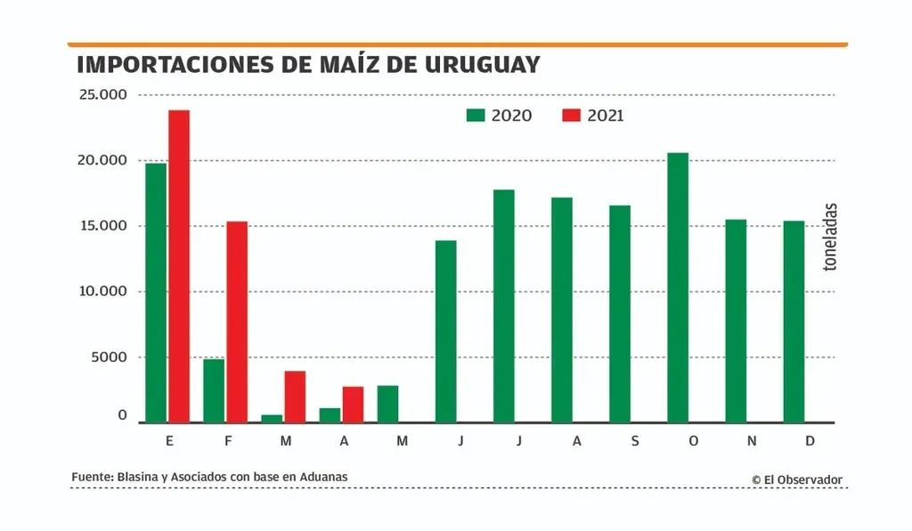 Los muy bajos rendimientos de los maíces de primera llevaron a incrementar las importaciones de maíz argentino en plena cosecha en Uruguay, fenómeno que no ocurría hace años.