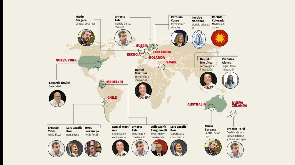 Mientras que los países del Cono Sur –especialmente Argentina y Brasil, pero también Chile y Paraguay– son junto a Venezuela motivo de fuego cruzado entre oficialismo y oposición, otros destinos como Finlandia o Medellín (Colombia) despiertan coincidencias a la hora de armar y comunicar las propuestas programáticas.