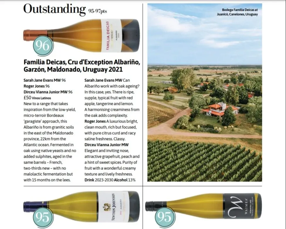 Fuera de Galicia y Portugal, el mejor Albariño del mundo se produce en Uruguay y es el Cru D´Exception Albariño de bodega Familia Deicas, según la prestigiosa revista inglesa Decanter.
