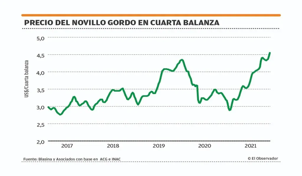 El valor de los novillos gordos bien terminados está en el mayor precio de la historia, supera los US$ 4,60 por kilo de carcasa, un valor que en la anterior normalidad tal vez se ubicaba promedialmente entre los US$ 3,20 y US$ 3,50.