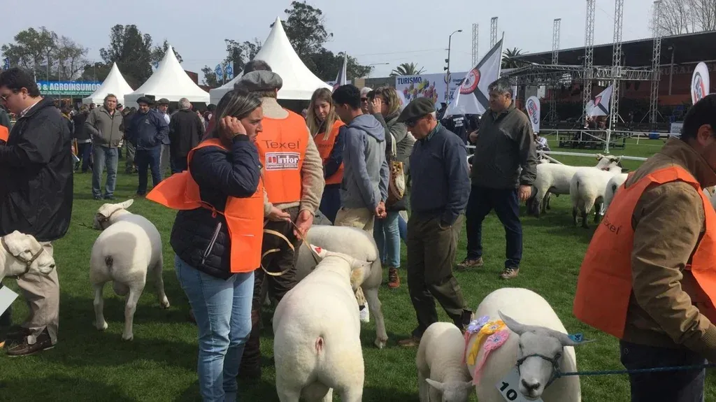La raza ovina carnicera Texel exhibió este viernes 6 en la pista N° 2 de la Rural del Prado reproductores muy productivos y con buen desplazamiento, característica muy importante para producir carne ovina a pasto.