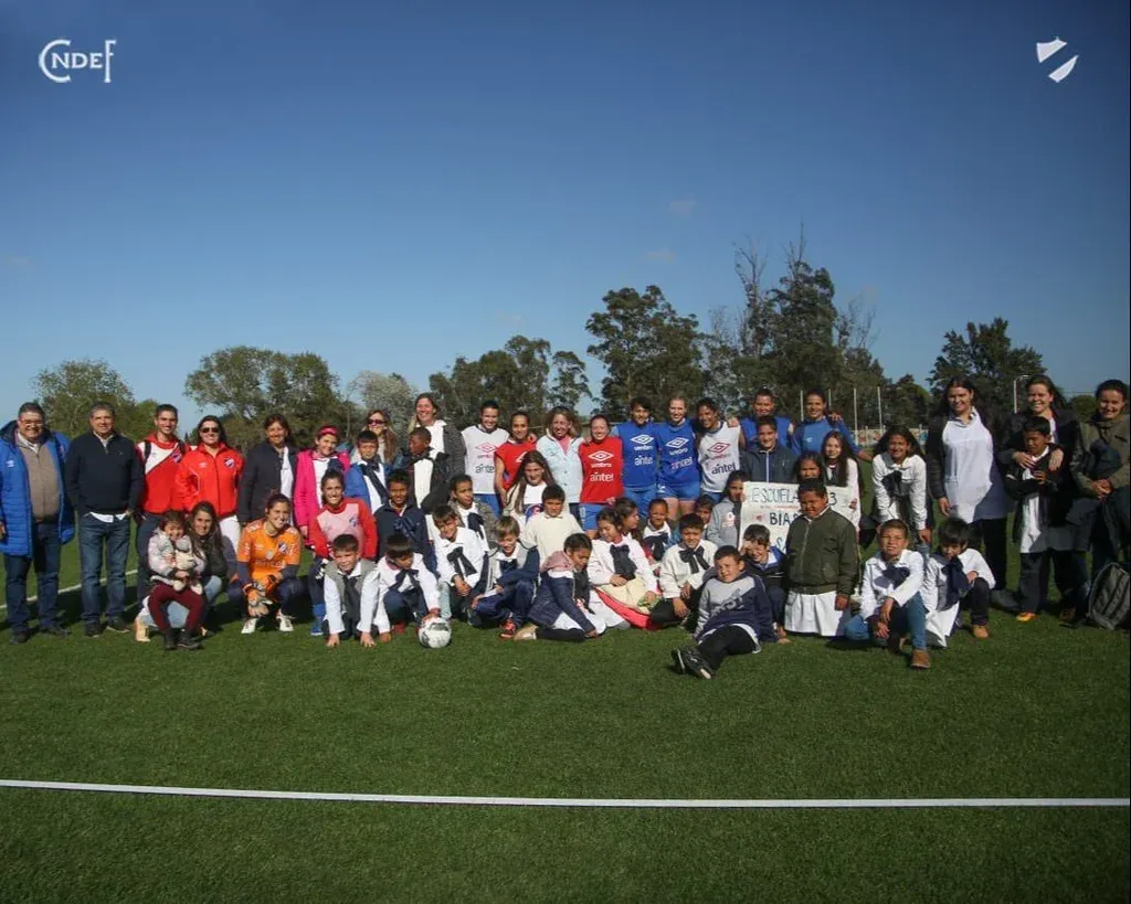 Los escolares compartieron la mañana con los planteles principales tricolores masculinos y femeninos, informó Nacional en sus redes, con fotos del encuentro.