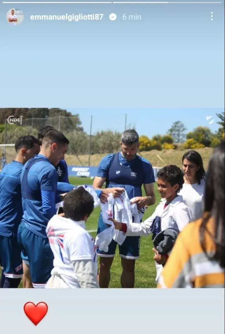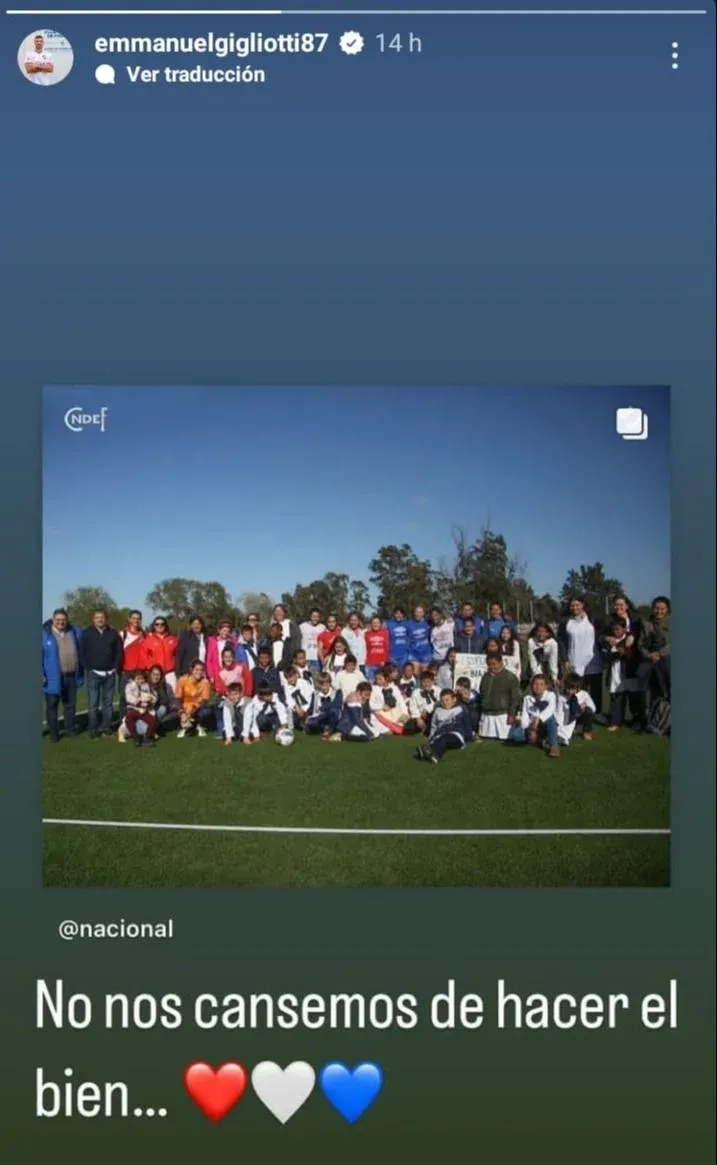 Emmanuel Gigliotti, el delantero argentino de Nacional, destacó en sus redes el momento que compartieron los jugadores del plantel tricolor este martes al recibir las visitas de escolares en el entrenamiento en la Ciudad Deportiva Los Céspedes.