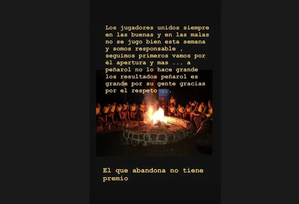 “Los jugadores unidos siempre, en las buenas y en las malas, no se jugó bien esta semana y somos responsables”, escribió, junto a una imagen en la que se ve a los futbolistas sentados alrededor de un fogón.