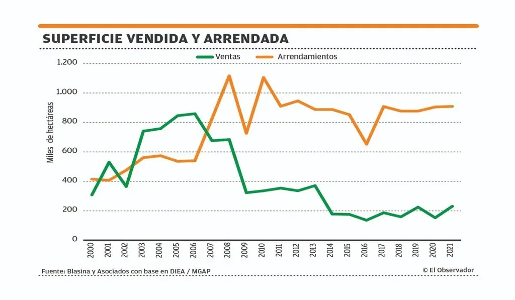 “La demanda estructural siempre es más alta por los campos agrícolas”, afirma Bachino, porque es “el negocio que la gente de fuera del sector entiende más fácilmente que la ganadería: cada seis meses se pasa raya”.