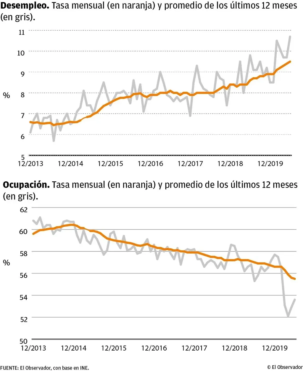 La economía uruguaya mantiene 78 mil empleos menos que en febrero y 40 mil por debajo de junio del año pasado. Por su parte, la tasa de desempleo aumentó un punto en el último mes relevado y se ubicó en 10,7%. Si bien se trata del mayor registro mensual desde 2006, no tiene que ver con un deterioro de las condiciones del mercado laboral sino con un incremento de 21 mil personas en la búsqueda activa de empleo.