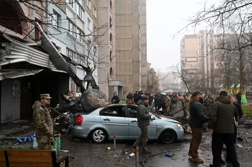 Entre las víctimas figuran el ministro del Interior, Denis Monastirski, de 42 años, su viceministro Yevgueni Yenin y otro alto funcionario, que iban a bordo del aparato junto a otras seis personas, informó el jefe de la policía nacional ucraniana en un comunicado.