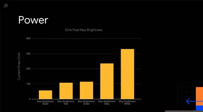 Todas estas pruebas se hicieron con el brillo de la pantalla al máximo. Si el brillo de la pantalla está a la mitad, el ahorro es de apenas un 14%. Incluso, las interfaces en modo oscuro no suelen usar el negro sino que usan los tonos gris y azul. A pesar de que consumen más, los OLED tardan un poco en cambiar de color cuando vienen del negro. Por eso el teléfono sufre un retraso cuando se hace scroll en algunos casos como en textos blancos con fondos negros.