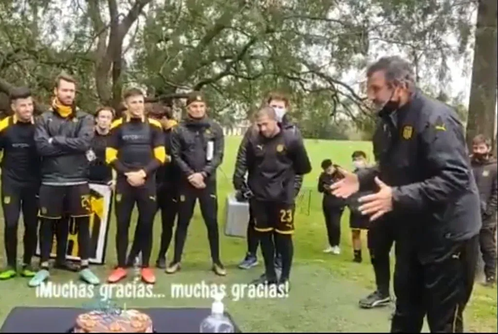 El Indio Olivera hablándole al plantel de Peñarol el año pasado