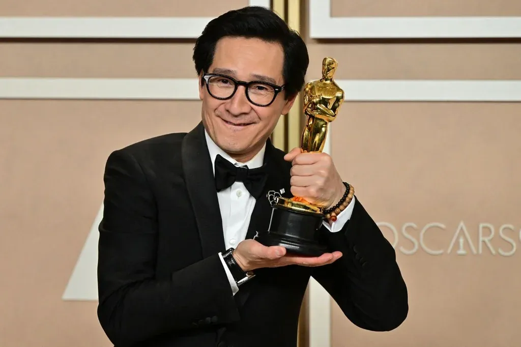 “Mi viaje empezó en un barco, pasé un año en un campo de refugiados, y de alguna forma, terminé acá, en el escenario más importante de Hollywood. Dicen que las historias como estas solo pasan en las películas, no puedo creer que me esté pasando a mí", dijo Quan, que empezó como niño actor en Indiana Jones y el templo de la perdición y Los Goonies, pero que debió retirarse rápidamente de la industria al no encontrar las oportunidades suficientes.