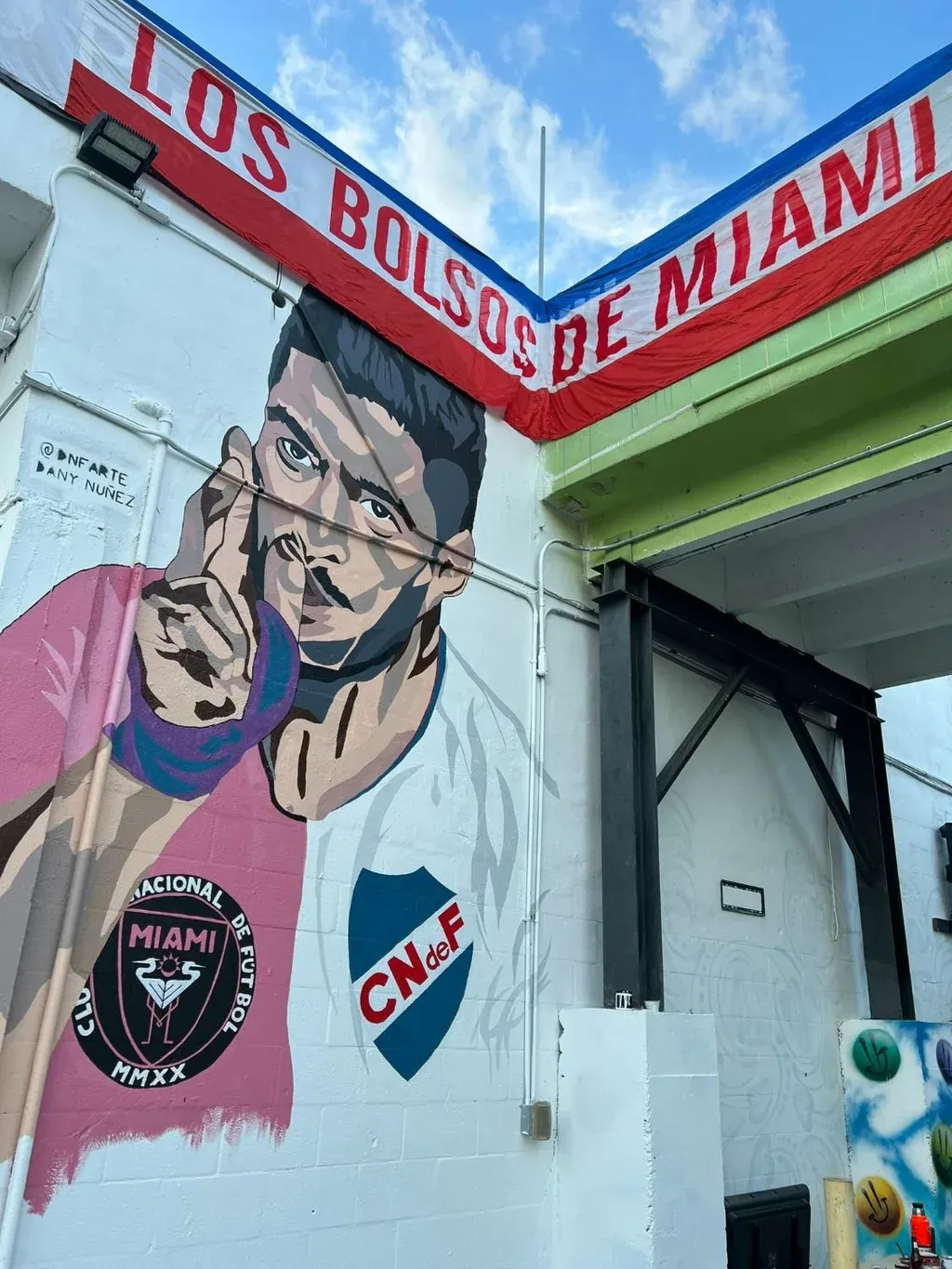 “En el día de ayer y en el comienzo de los festejos por los 125 años, Los Bolsos de Miami y La Filial inauguramos este mural que pasarán a formar parte del Paseo histórico cultural de Wyndwood. Este pequeño homenaje a @LuisSuarez9 es el primero de una serie de murales tricolores”, indicaron en sus redes los parciales albos.