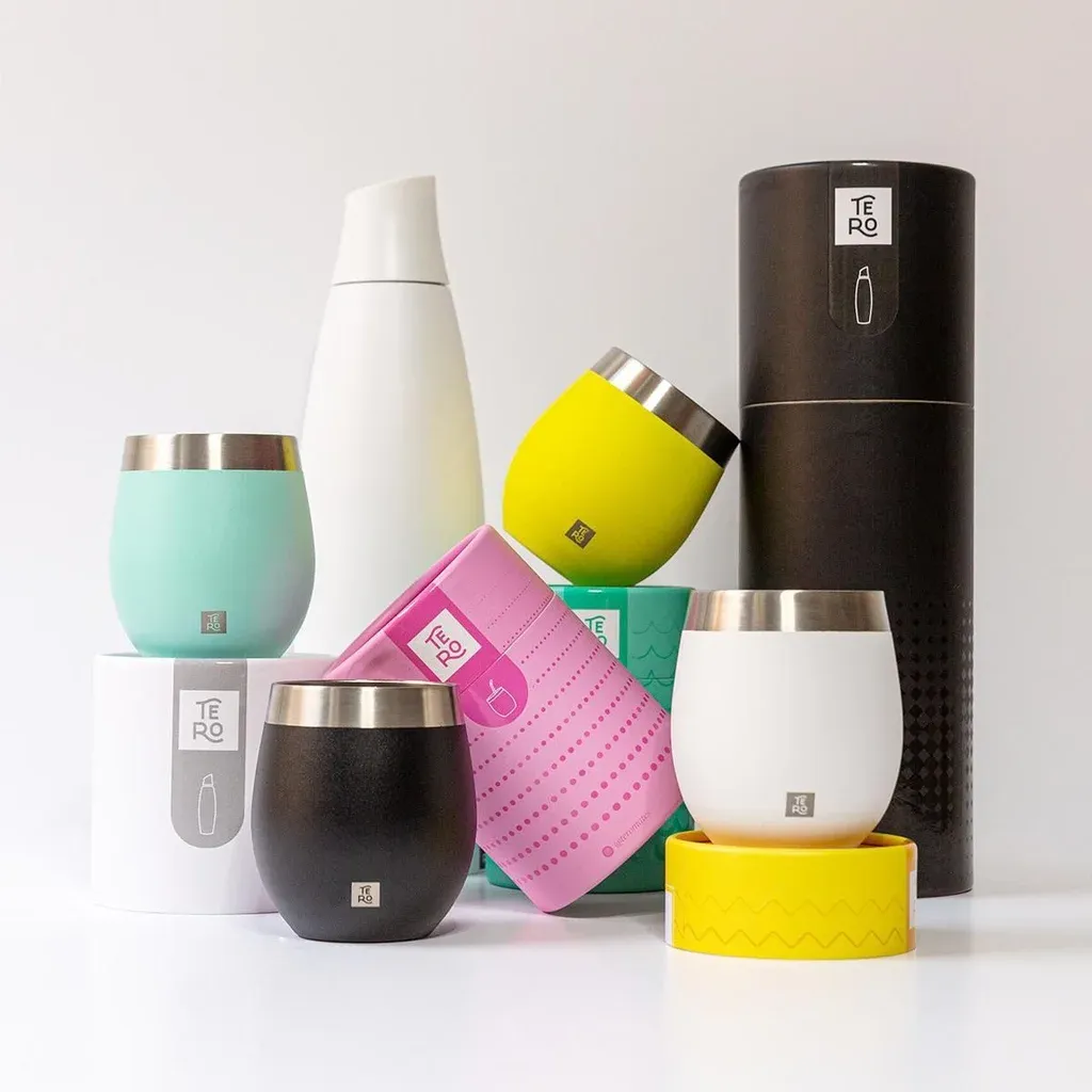 TeroMates acaba de incorporar una línea de termos, que busca ser funcional y facilitar el día a día. Salgado comentó que esta es una filosofía dentro del proyecto, y puso como ejemplo que el mate también sirve para tomar otro tipo de bebidas como café o té.