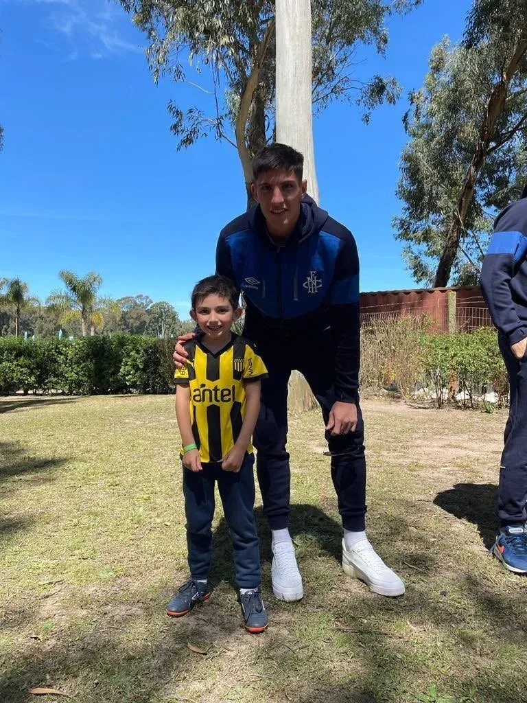 En la visita de Nacional a Maldonado de este fin de semana para jugar ante Fénix en el Campus, el pequeño hincha de Peñarol aprovechó para ir a sacarse una foto con Suárez y Rochet, quienes también son figuras de la selección uruguaya.