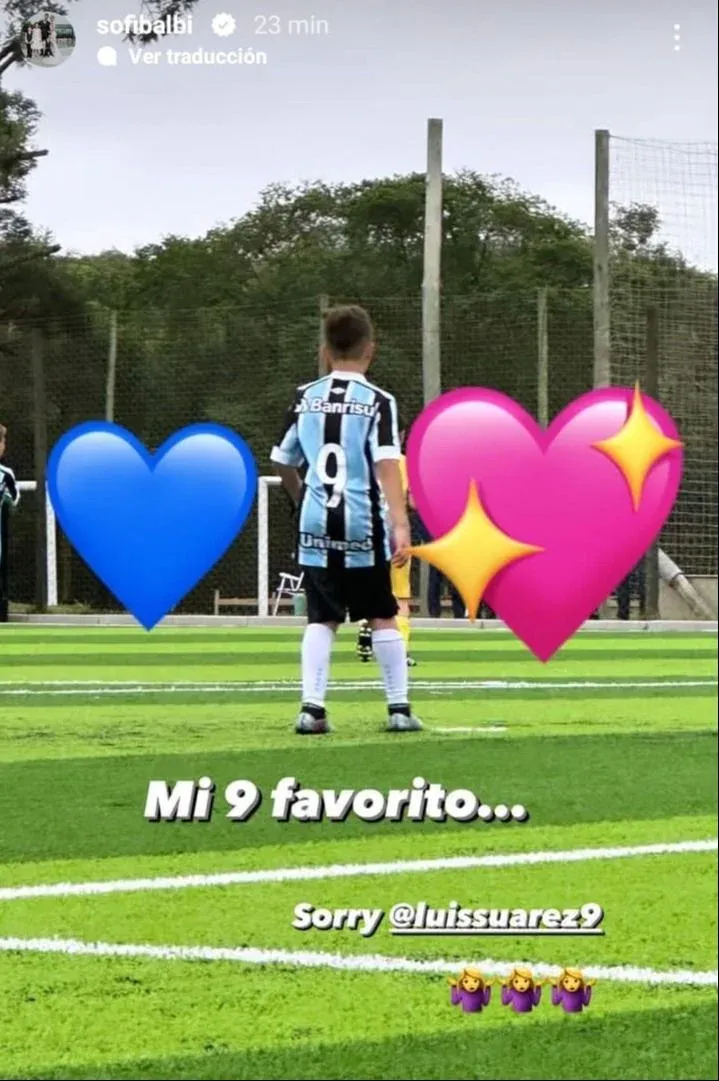 Sofía Balbi, la esposa del delantero uruguayo Luis Suárez, tiene un nuevo futbolista número 9 favorito, según publicó este miércoles en sus redes sociales, donde le pidió disculpas al atacante de Gremio.
