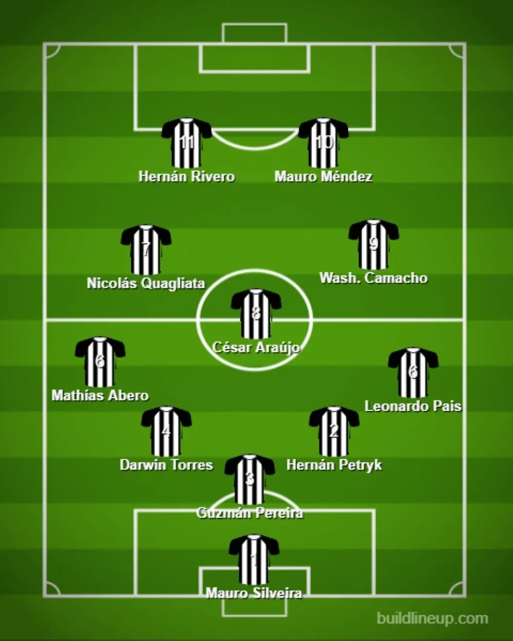 En el medio aparecen César Araújo con el aporte futbolístico de Washington Camacho y de Nicolás Quagliata, y arriba jugarán Mauro Méndez y Hernán Rivero.