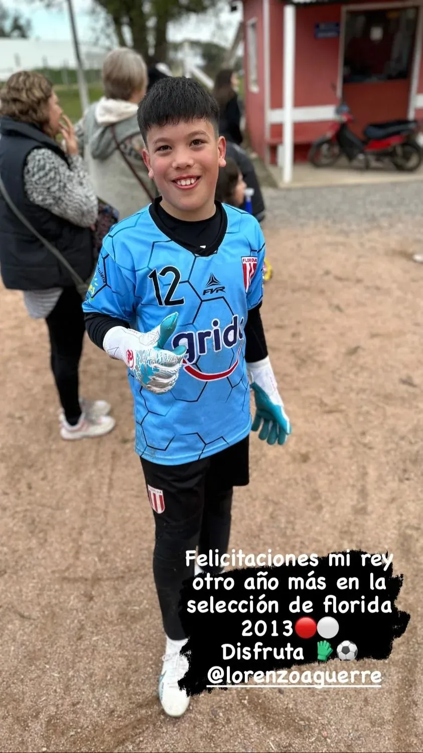 "Felicitaciones mi rey, otro año más en la selección de Florida 2013. Disfruta", escribió Washington Aguerre en las redes sociales para destacar que Lorenzo fue convocado nuevamente a la selección floridense, donde vive.