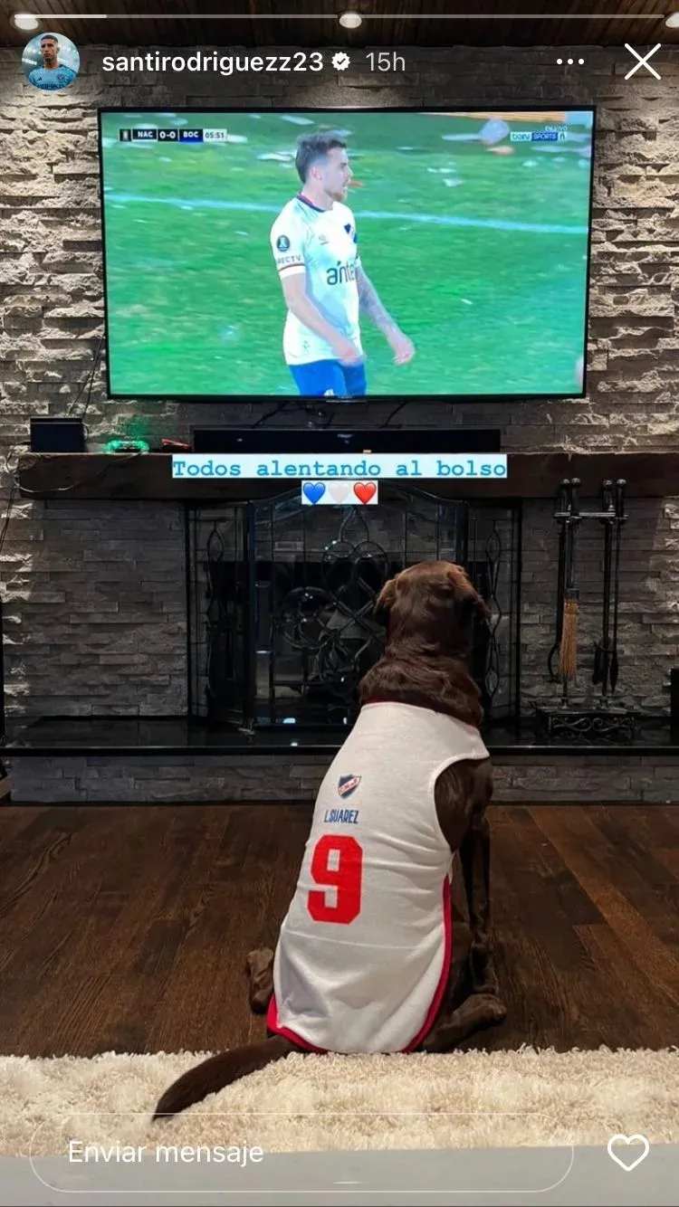El volante que se inició en Los Céspedes y ahora juega en el New York City de la MLS, publicó una fotografía del televisor donde se ve a Alfonso Trezza y delante de él un perro con una camiseta número 9 de Nacional.