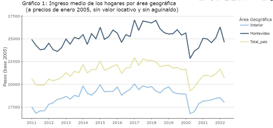 El ingreso medio de los hogares durante el segundo trimestre (abril-junio) se ubicó en $ 77.480, mientras que el ingreso medio per cápita se ubicó en $ 27.592, según el INE. En ambos casos se produjo un descenso versus el primer trimestre, que fue de $ 79.000 y $ 28.026, respectivamente.