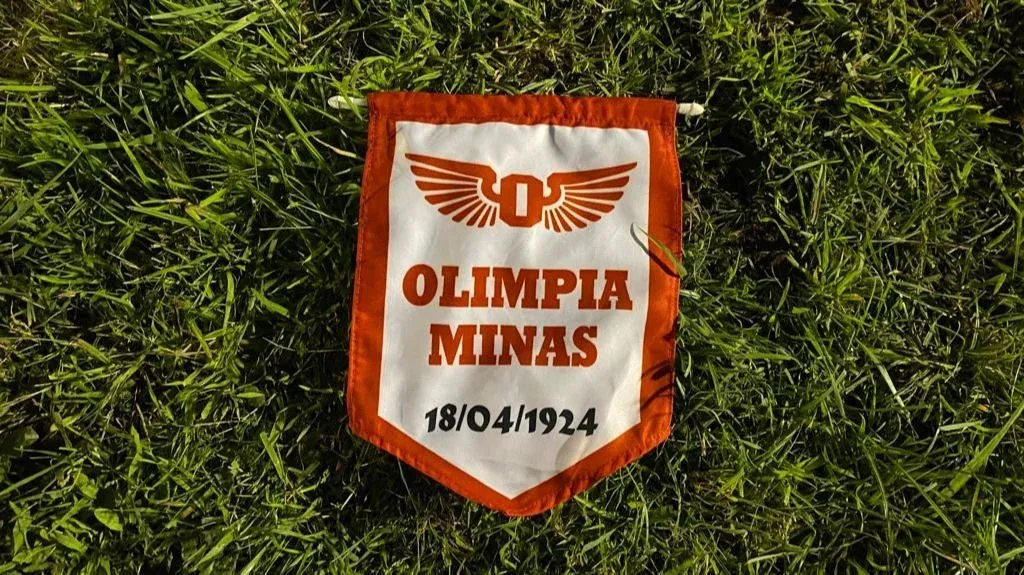 Banderín que el Club Olimpia le entregó a Barrio Olímpico